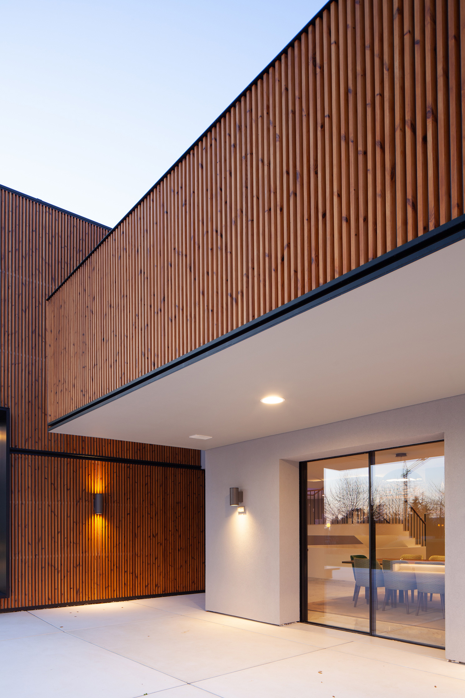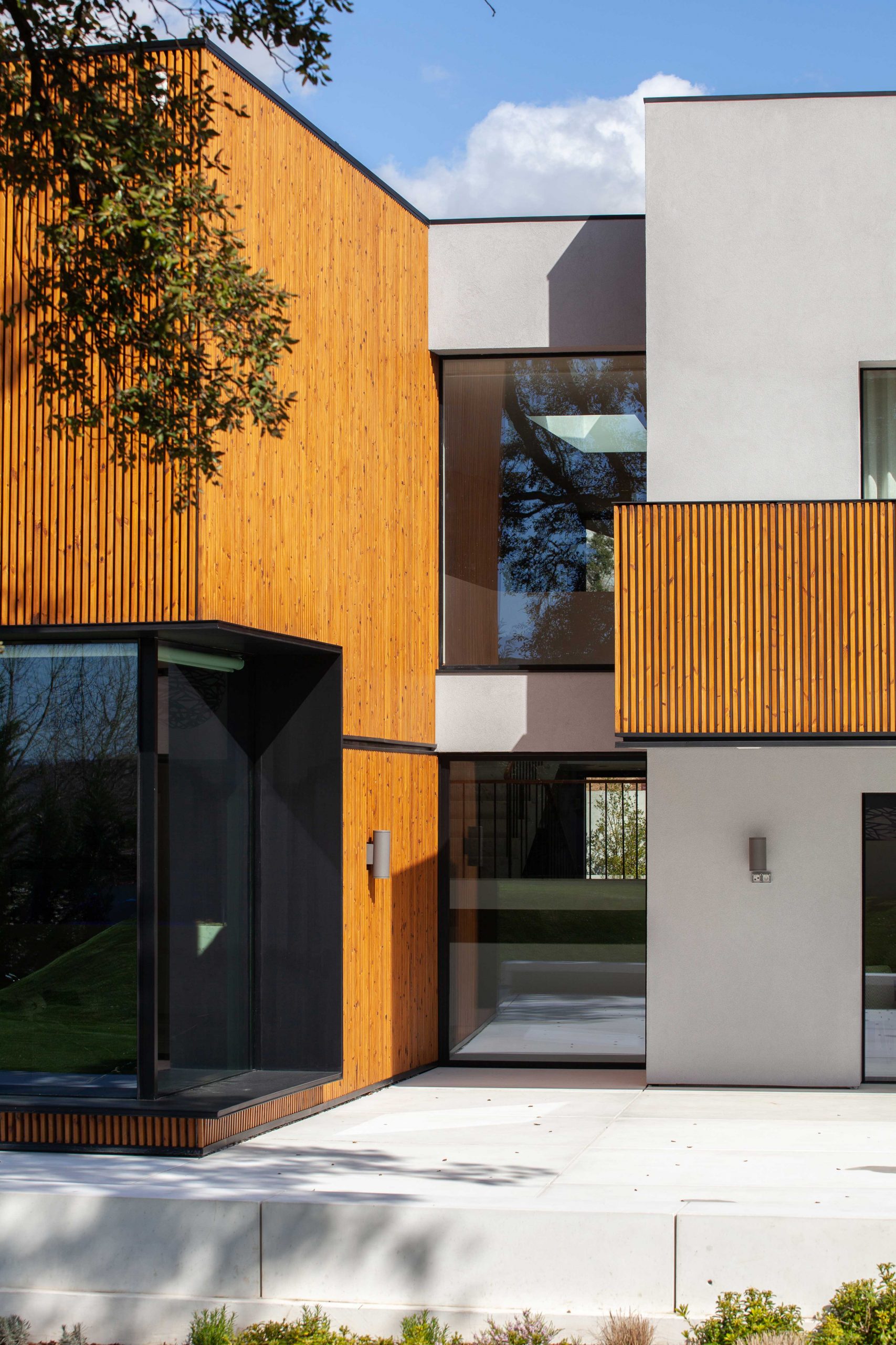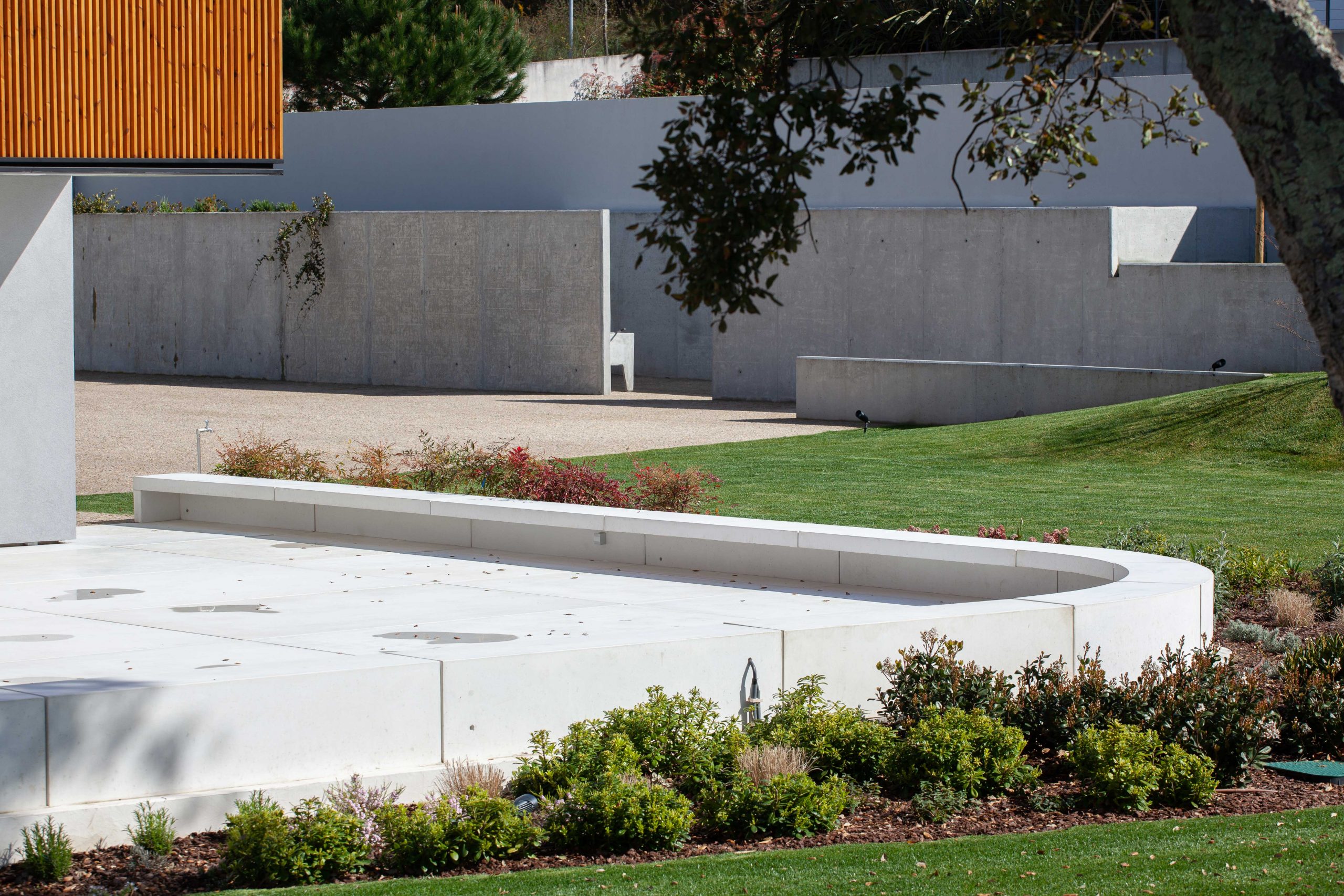 O terraço abre para o “anfiteatro “ do jardim, correspondendo ao desejo do cliente, assim como corte da relação do espaço publico – a rua.