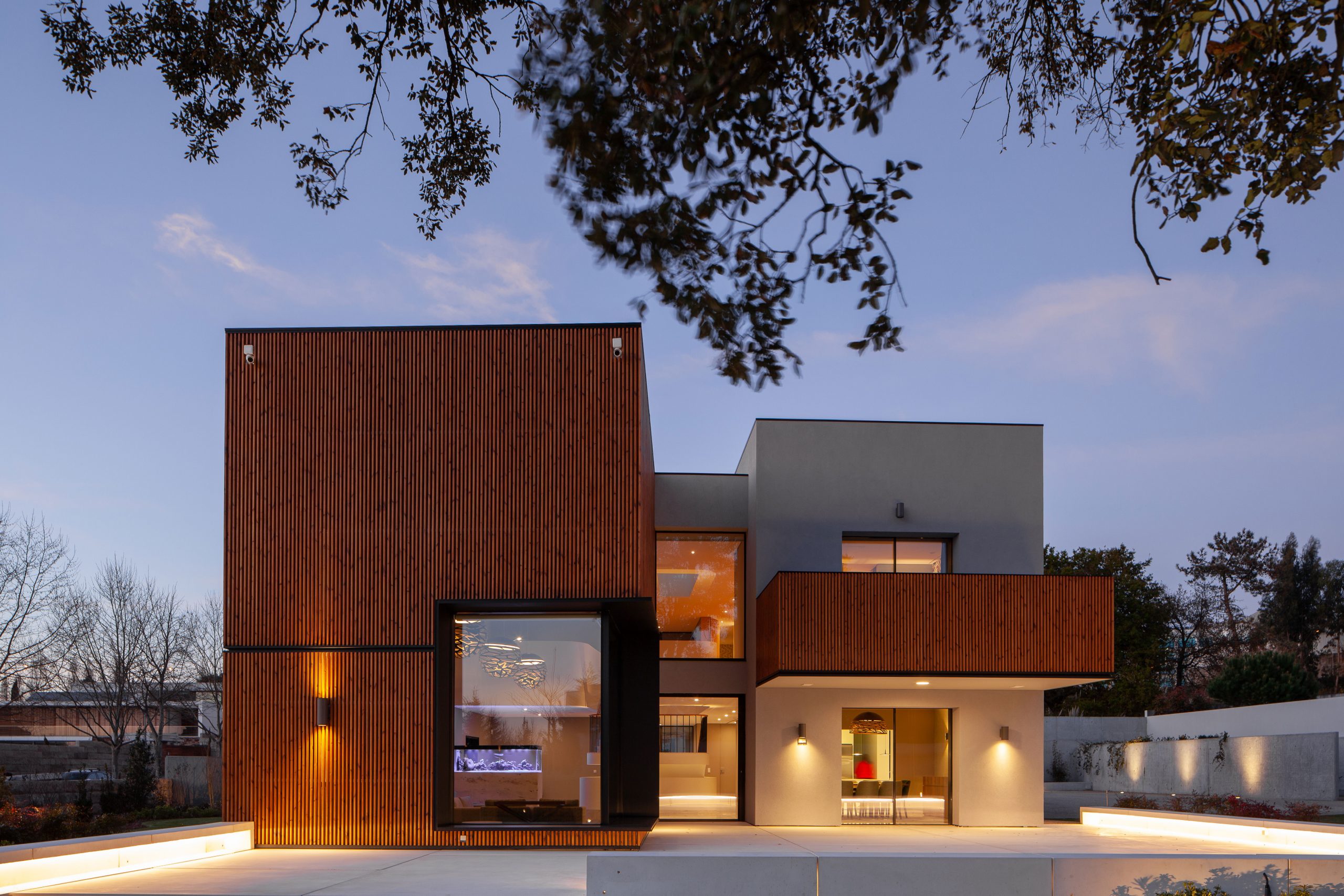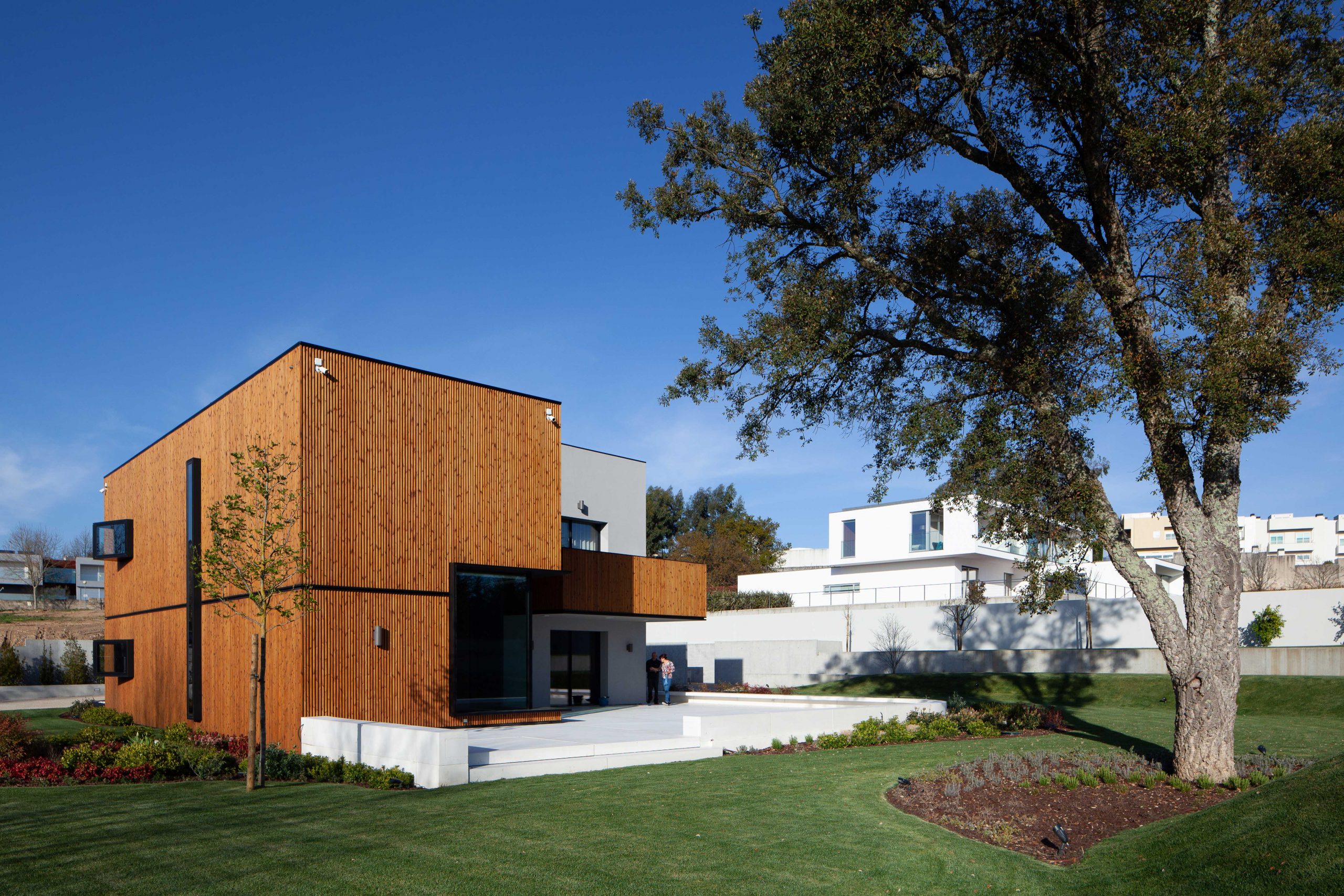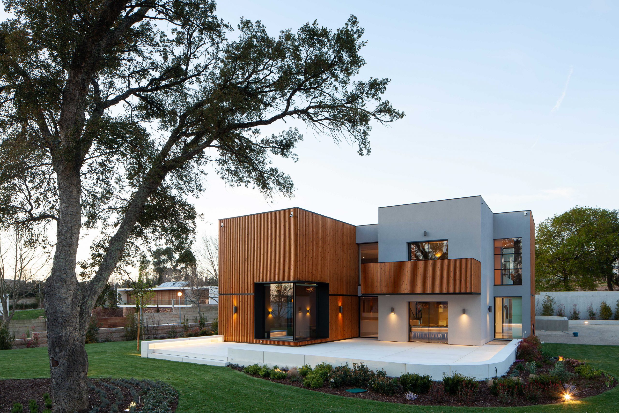 Inserida num loteamento, a casa desenvolve-se no sentido longitudinal do retângulo do terreno, sobre um eixo de simetria definido pelo sobreiro, seguido de uma translação que proporcionou a criação dos dois volumes. A nascente quartos, a sul salas.